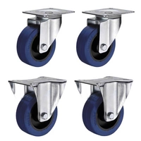 Zestaw 4 koła skrętne do 55kg PVC 100mm płyta niebieski bieżnik