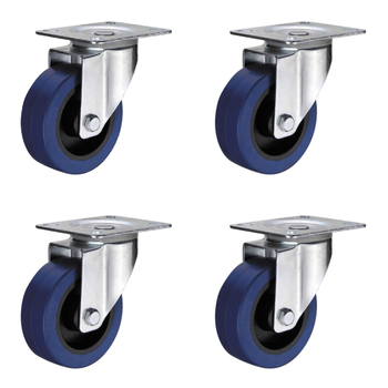 ( ilość produktów: 136 )Zestaw 4 koła skrętne 100mm/150kg bez hamulca, płyta niebieski bieżnik