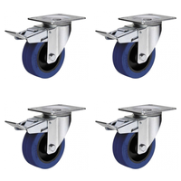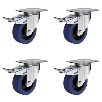 Zestaw 4 koła skrętne 125mm/200kg z hamulcem, płyta, niebieski bieżnik
