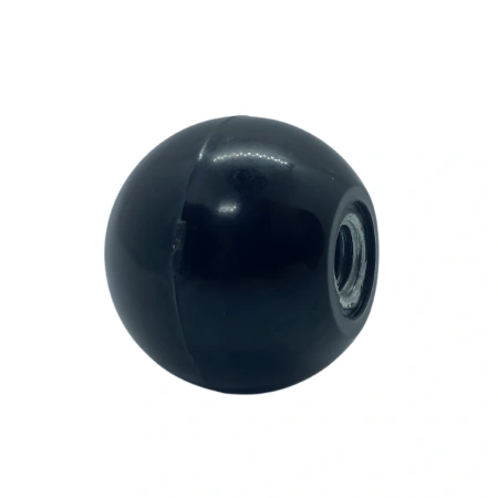 - Czarna, bakelitowa gałka przemysłowa o średnicy 40mm i gwintowanej tulei M12 o długości 22mm.