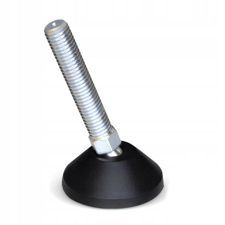 - Poliamidowa wahliwa stopka regulująca o gładkiej podstawie ⌀40mm. Stalowy, ocynkowany sworzeń o gwincie M10 i długości 60mm wychylający się maksymalnie na 30°. Maksymalne obciążenie na stopkę wynosi 450kg.