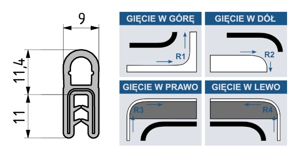 - Uszczelka z gumy EPDM o zakresie grubości 1,5-2,5 mm. Posiada stalowe wzmocnienia oraz bąbel górny. Sprzedawana w metrach bieżących - pełna rolka tej uszczelki ma 100m. Uszczelka spełnia normę V-0 dla standardu palności tworzyw sztucznych UL 94.