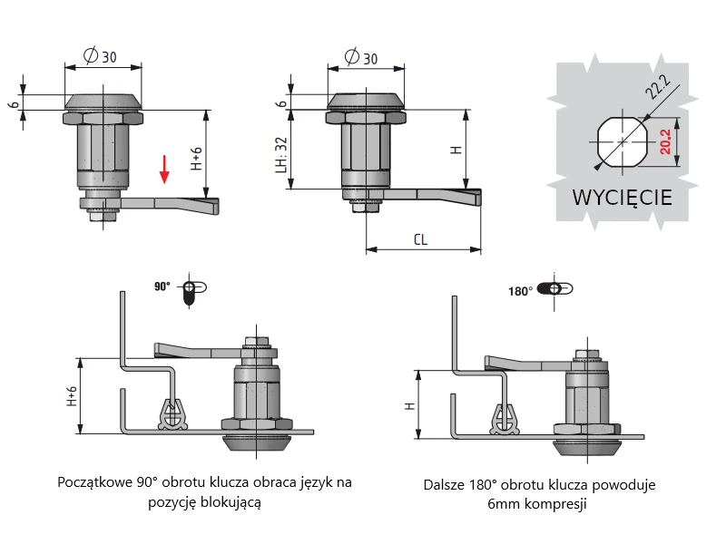 - Dociskowy zamek przemysłowy z wkładką dwuskrzydłową 3mm.