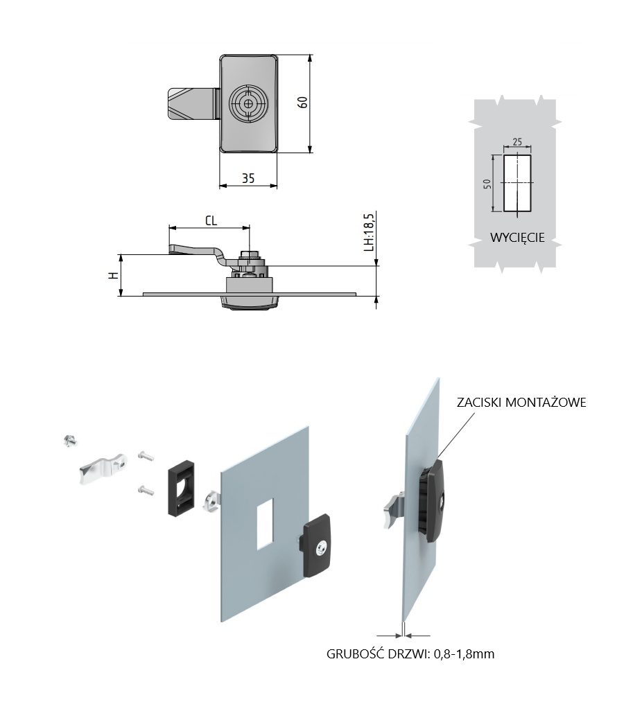 - Zamek przemysłowy ćwierćobrotowy z poliamidową obudową. Zamek otwierany jest kluczem kształtowym, dwuskrzydłowym 5mm. Zamek posiada zaczepy montażowe na obudowie panelu.