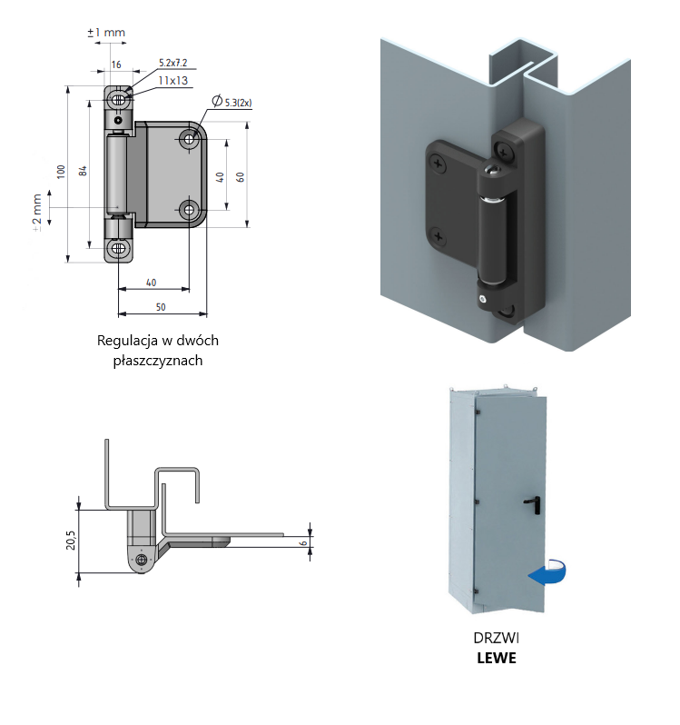 ✔ regulacja osiowa ±2 mm oraz promieniowa ±1 mm dla precyzyjnego montażu