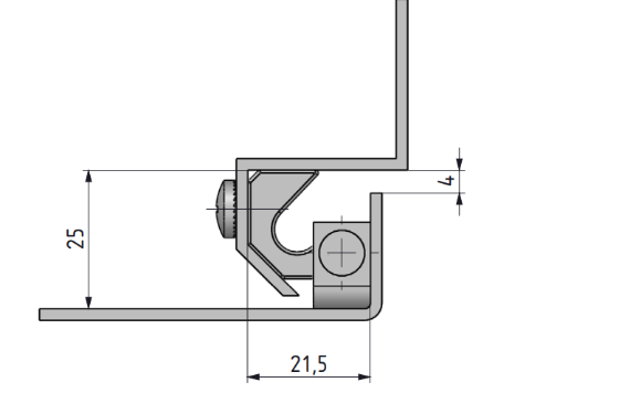 Zawias wewnętrzny do wspawania 19x60 mm zagięcie drzwi 25 mm, anodowany mat, do wkrętów M5