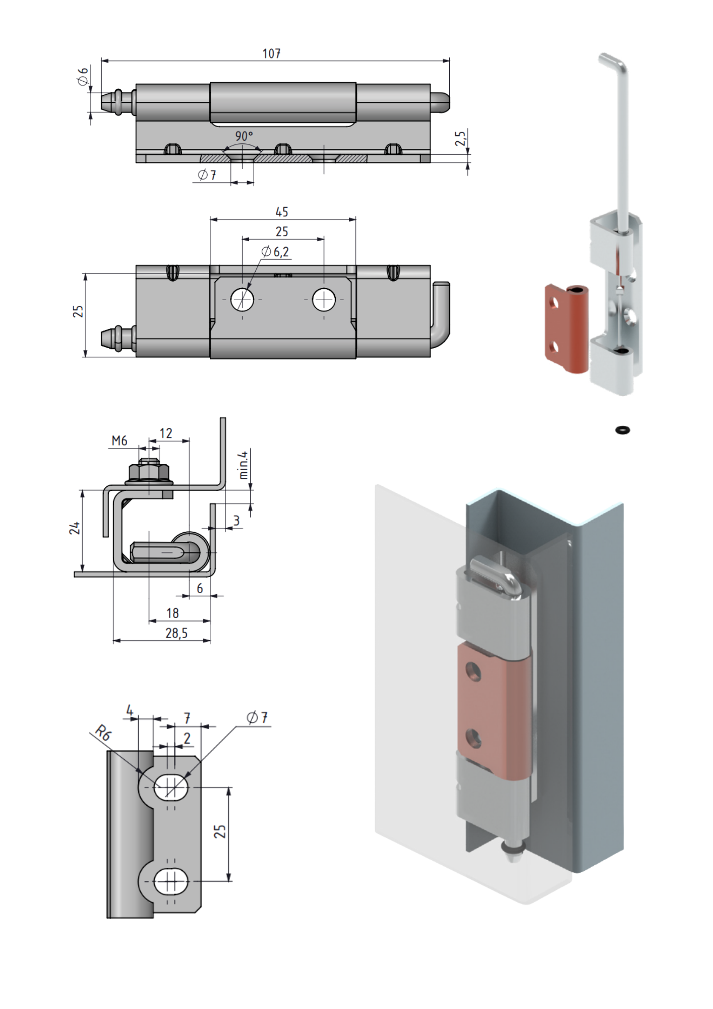 ✔️ Do drzwi metalowych z zagięciem bocznym 24 mm – wersja lewa/prawa ✔️ Korpus i część nieruchoma ze stali ocynkowanej ✔️ Mocowanie przez 4 otwory o średnicy 7 mm
